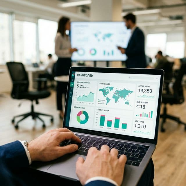Sales in one spreadsheet, expenses in another, inventory in a third. Half a day compiling a report that's outdated by the time it's shared. We build dashboards that connect to your tools and update in real time — one place, always current.